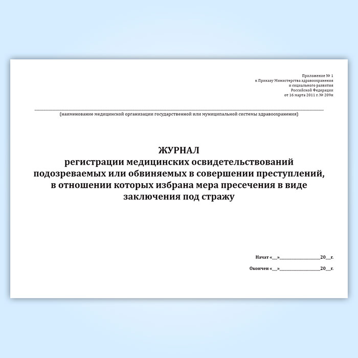 Журнал регистрации медицинских освидетельствований подозреваемых или обвиняемых в совершении преступлений, в отношении которых избрана мера пресечения в виде заключения под стражу в Верее купить