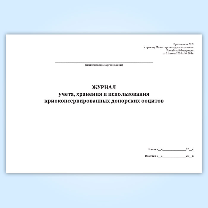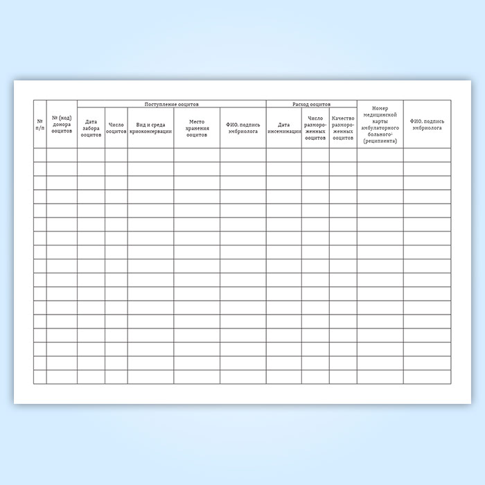 Журнал учета, хранения и использования криоконсервированных донорских ооцитов в Верее купить