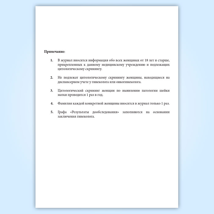 Журнал учета цитологического скрининга женщин по выявлению патологии шейки матки в Верее купить