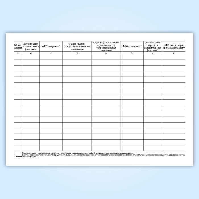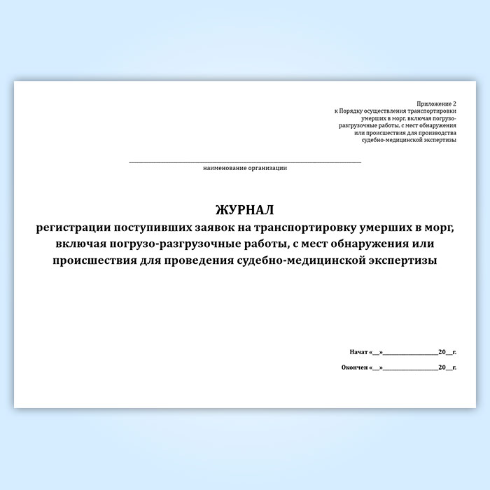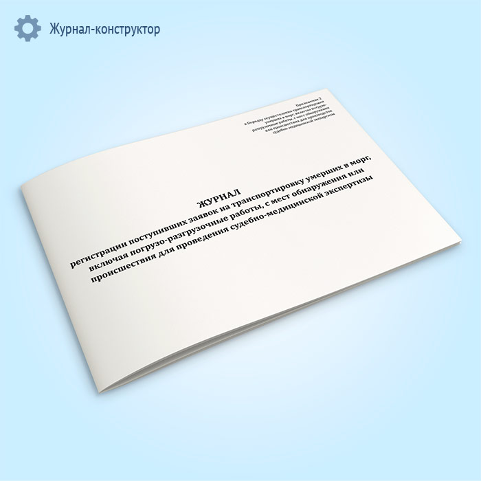 Журнал регистрации поступивших заявок на транспортировку умерших в морг, включая погрузо-разгрузочные работы, с мест обнаружения или происшествия для проведения судебно-медицинской экспертизы в Верее купить