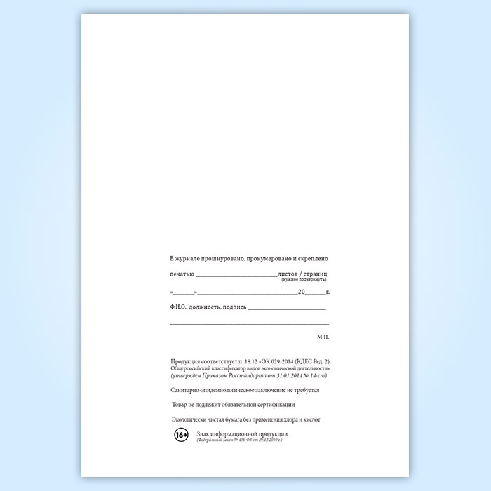 Вы получаете печатную продукцию прошнурованной и c местом для вашей печати в соответствии с действующими нормативными документами: