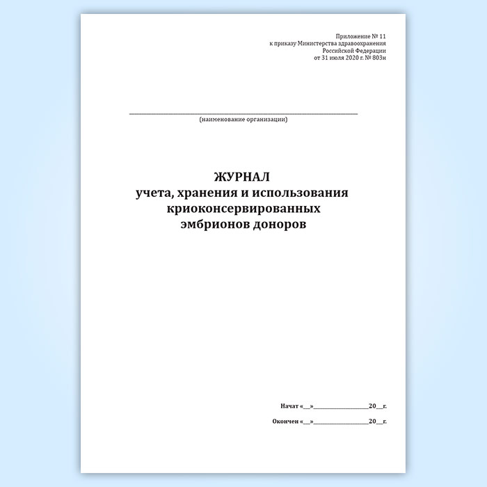 Журнал учета, хранения и использования криоконсервированных эмбрионов доноров в Верее купить