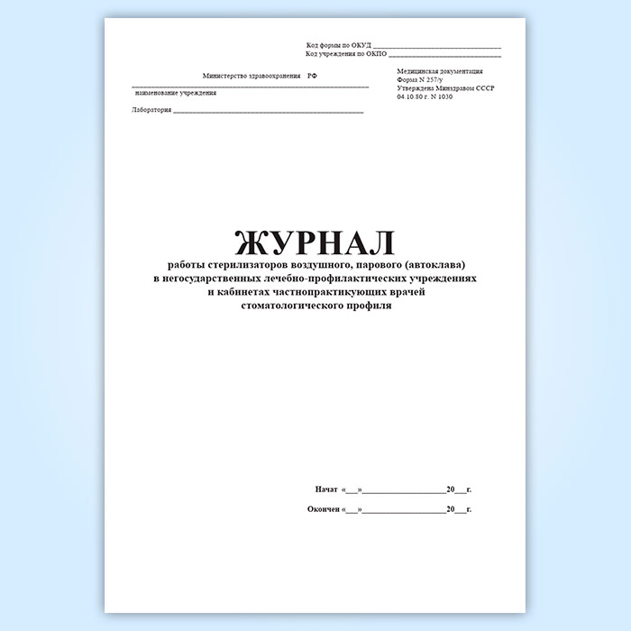Журнал работы стерилизаторов воздушного, парового (автоклава) в негосударственных лечебно-профилактических учреждениях и кабинетах частнопрактикующих врачей стоматологического профиля (форма 257/у) в Верее купить