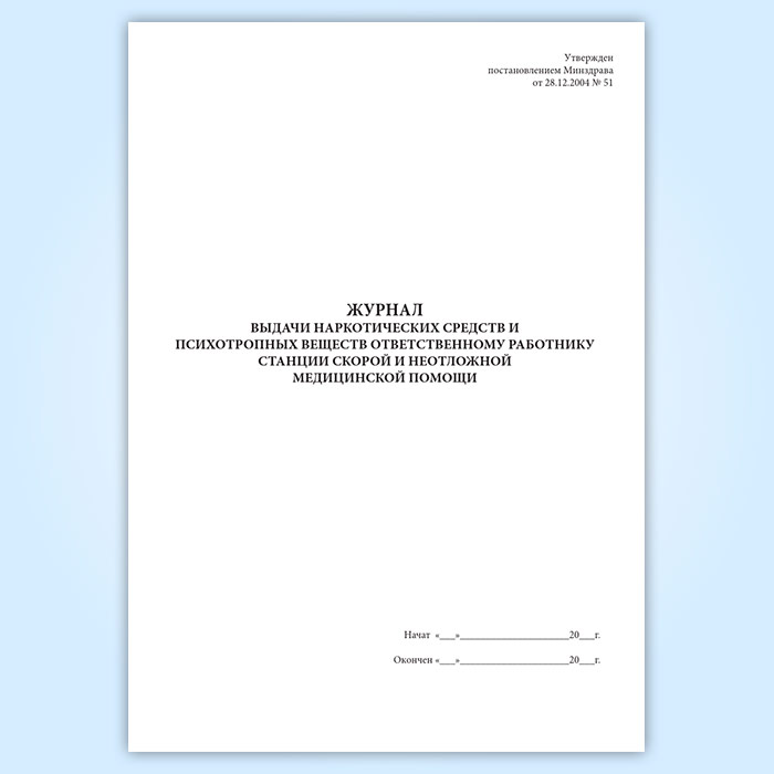 Журнал выдачи наркотических средств и психотропных веществ ответственному работнику станции скорой и неотложной медицинской помощи в Верее купить