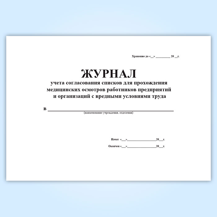 Журнал учета согласования списков для прохождения медицинских осмотров работников предприятий и организаций с вредными условиями труда в Верее купить