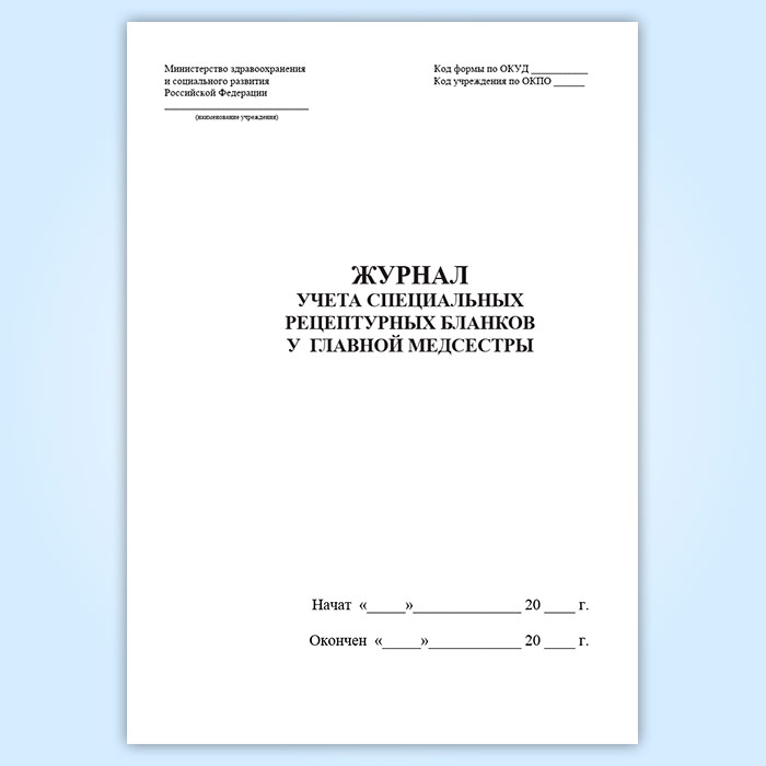 Журнал учета специальных рецептурных бланков у главной медсестры в Верее купить