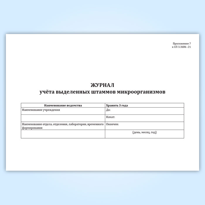 Журнал учета выделенных штаммов микроорганизмов (СанПиН 3.3686-21) в Верее купить