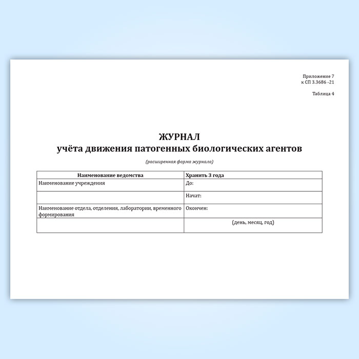 Журнал учета движения патогенных биологических агентов (СанПиН 3.3686-21, расширенная форма) в Верее купить