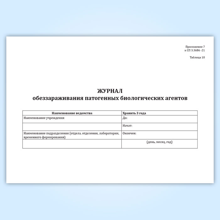 Журнал обеззараживания патогенных биологических агентов (СанПиН 3.3686-21) в Верее купить
