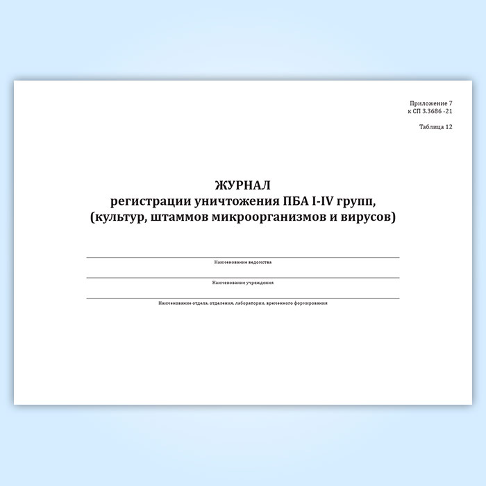 Журнал регистрации уничтожения ПБА I-IV групп, (культур, штаммов микроорганизмов и вирусов) в Верее купить