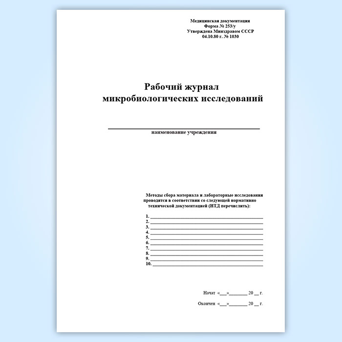 Рабочий журнал микробиологических исследований (форма 253/у) в Верее купить