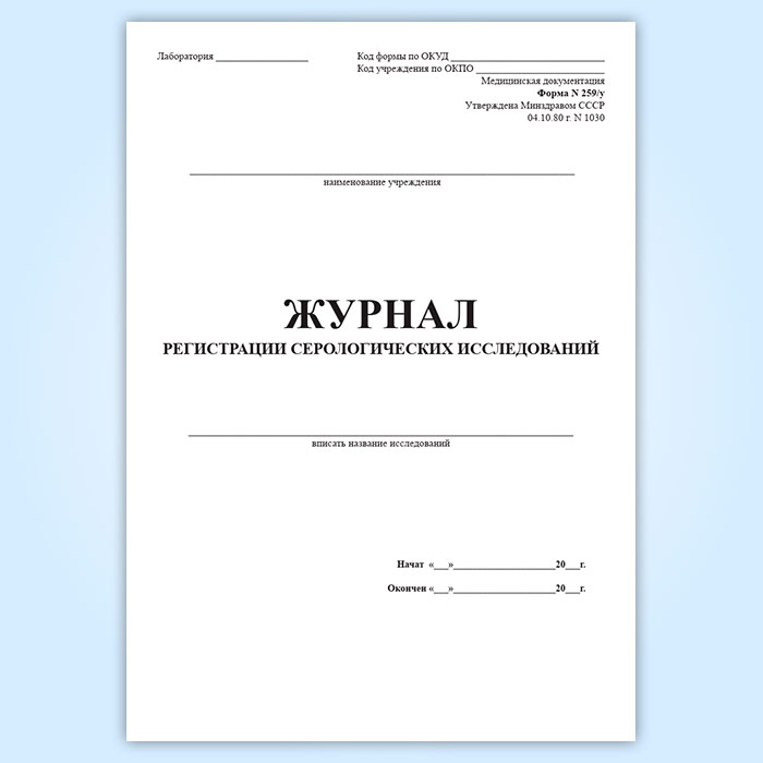 Журнал регистрации серологических исследований (форма 259/у) в Верее купить