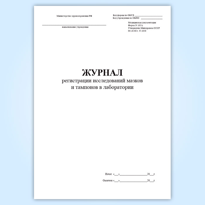 Журнал регистрации исследований мазков и тампонов в лаборатории (форма 185/у) в Верее купить