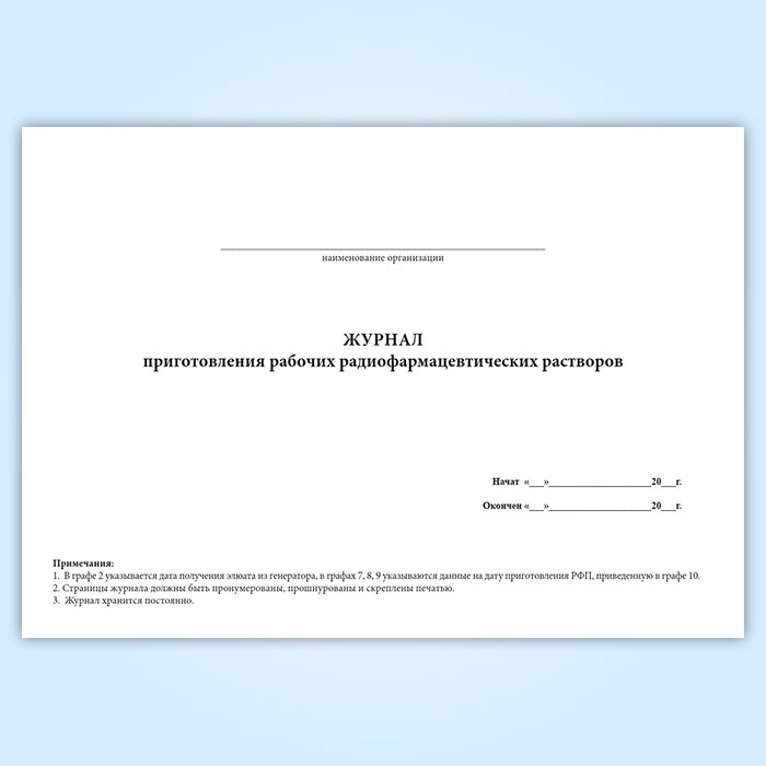 Журнал приготовления рабочих радиофармацевтических растворов в Верее купить