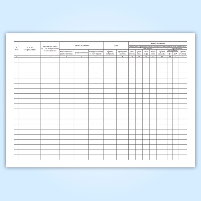 Журнал учета серологических исследований на паразитарные заболевания в Верее купить