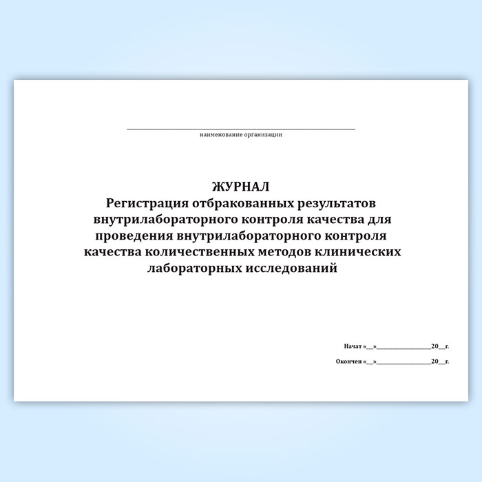 Журнал «Регистрация отбракованных результатов внутрилабораторного контроля качества для проведения внутрилабораторного контроля качества количественных методов клинических лабораторных исследований» в Верее купить