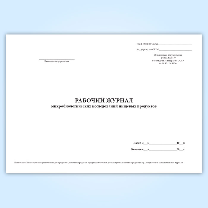 Рабочий журнал микробиологических исследований пищевых продуктов (форма 385/у) в Верее купить