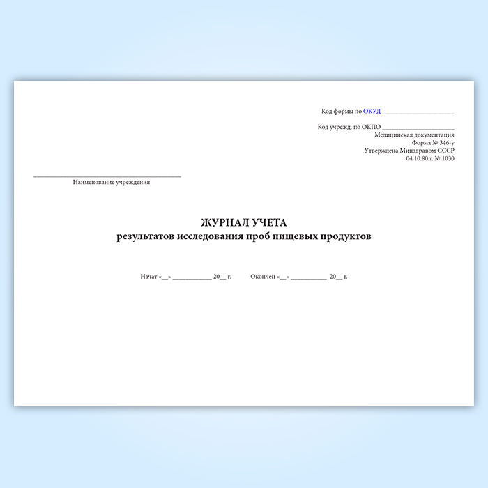 Журнал учета результатов исследования проб пищевых продуктов (форма 346/у) в Верее купить