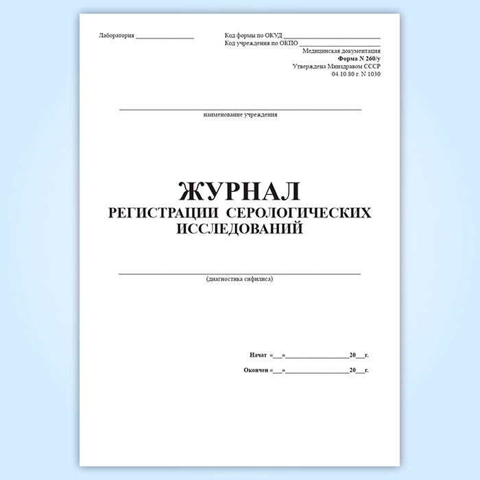 Журнал регистрации серологических исследований (диагностика сифилиса) (форма 260/у) в Верее купить