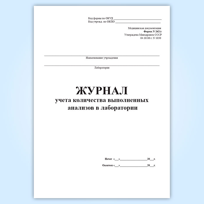 Журнал учета количества выполненных анализов в лаборатории (форма 262/у) в Верее купить