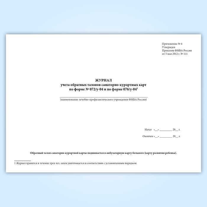 Журнал учета обратных талонов санаторно-курортных карт по форме (№ 072/у-04 и по форме 076/у-04 ) в Верее купить