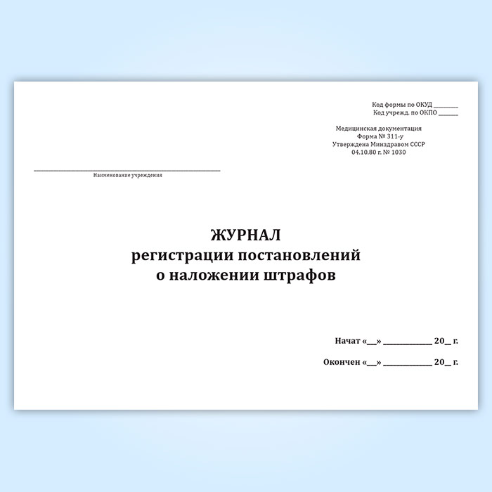 Журнал регистрации постановлений о наложении штрафов (форма 311-у) в Верее купить