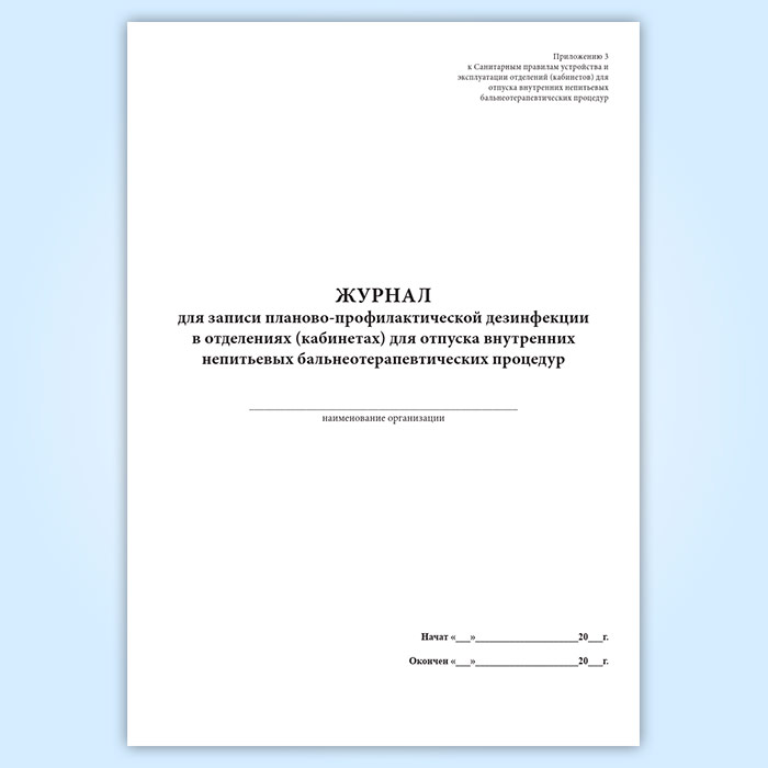 Журнал для записи планово-профилактической дезинфекции в отделениях (кабинетах) для отпуска внутренних непитьевых бальнеотерапевтических процедур в Верее купить