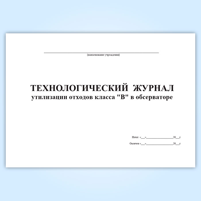 Технологический журнал утилизации отходов класса «В» в обсерваторе в Верее купить