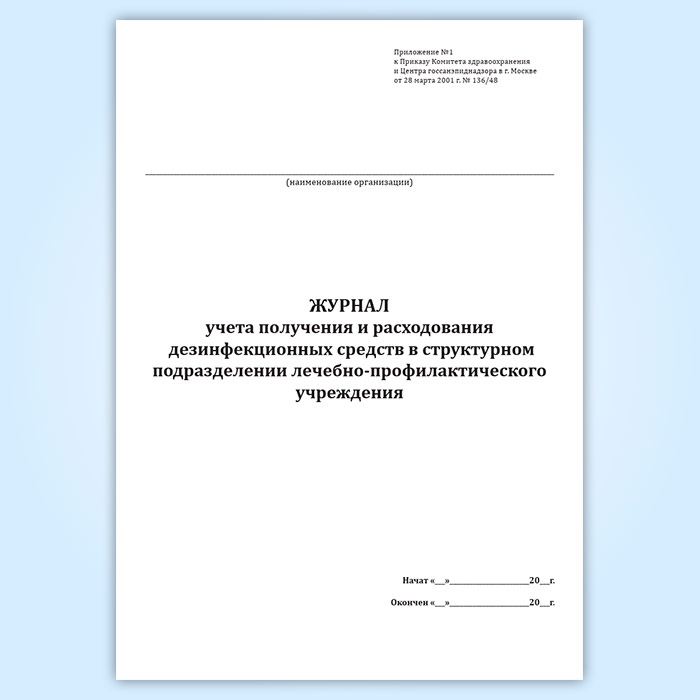 Журнал учета получения и расходования дезинфекционных средств в структурном подразделении лечебно-профилактического учреждения в Верее купить