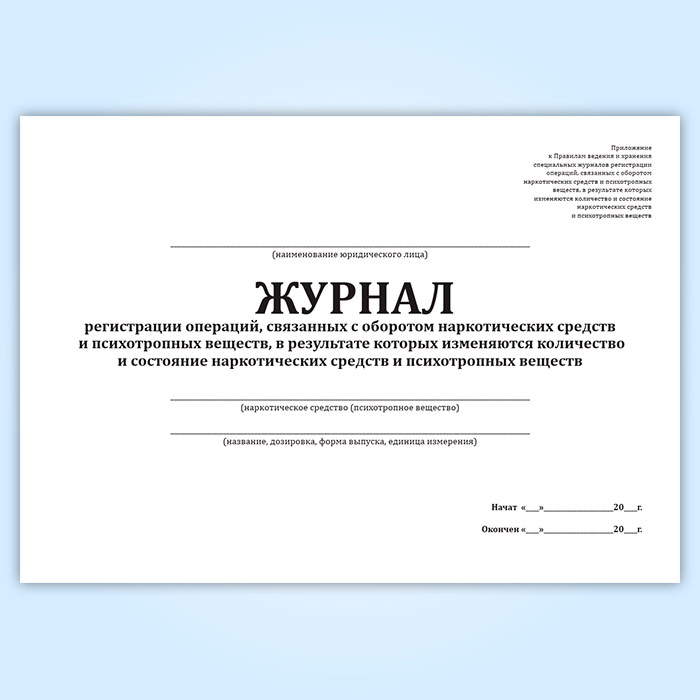 Журнал регистрации операций, связанных с оборотом наркотических средств и психотропных веществ, в результате которых изменяются количество и состояние наркотических средств и психотропных веществ в Верее купить
