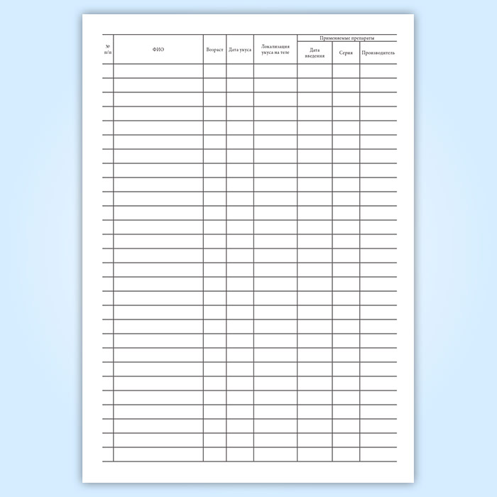 Журнал учета покусов людей животными (форма А002) в Верее купить