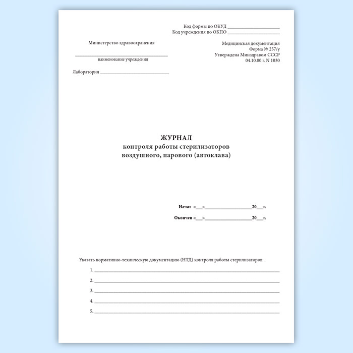 Журнал контроля работы стерилизаторов воздушного, парового (автоклава) (форма 257/у) в Верее купить