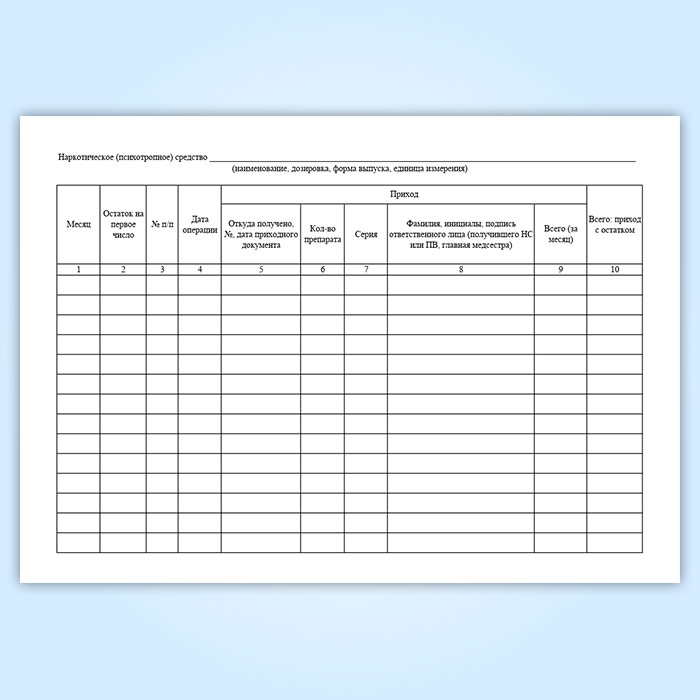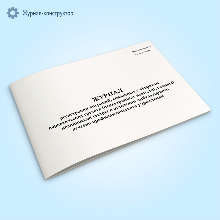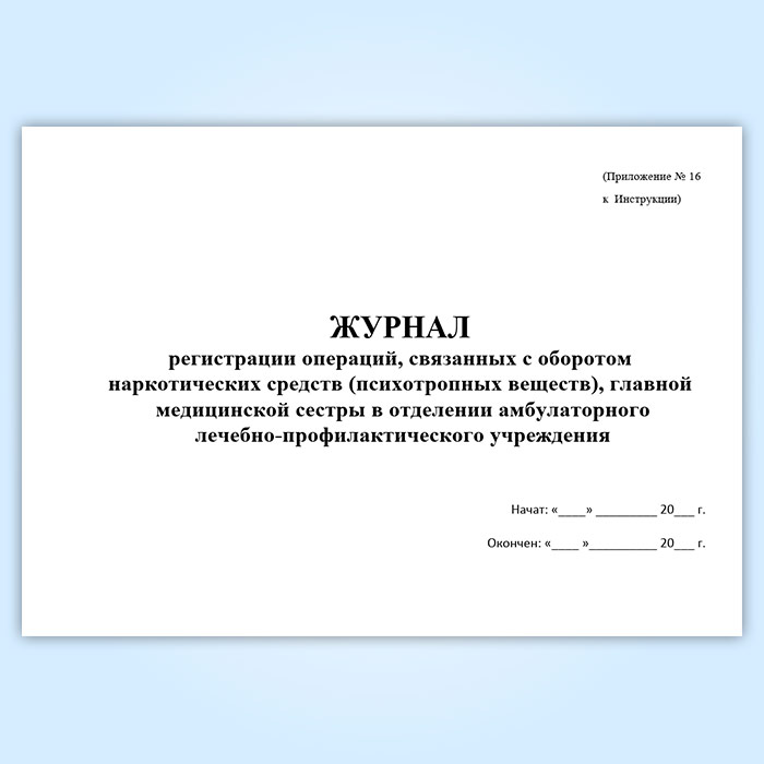 Журнал регистрации операций, связанных с оборотом наркотических средств (психотропных веществ), главной медицинской сестры в отделении амбулаторного лечебно-профилактического учреждения в Верее купить