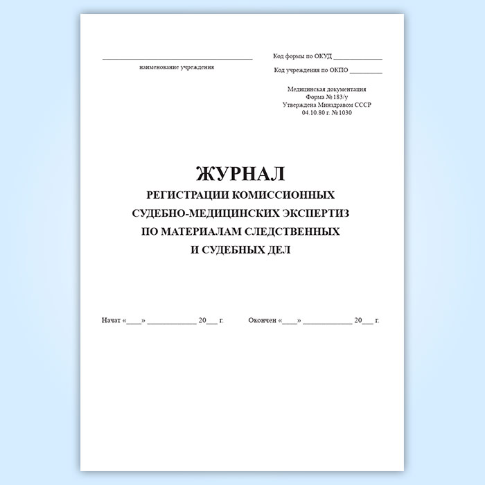 Журнал регистрации комиссионных судебно-медицинских экспертиз по материалам следственных и судебных дел (форма 183/у) в Верее купить