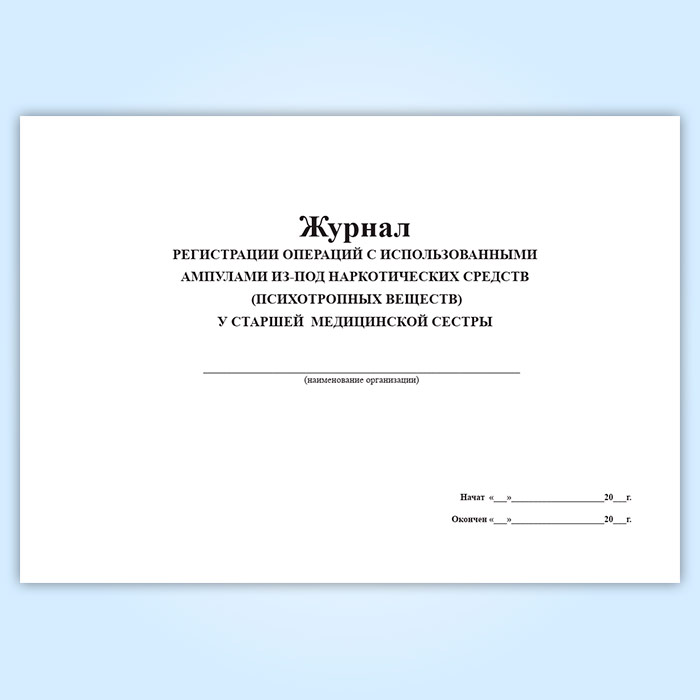 Журнал регистрации операций с использованными ампулами из-под наркотических средств (психотропных веществ) у старшей медицинской сестры в Верее купить