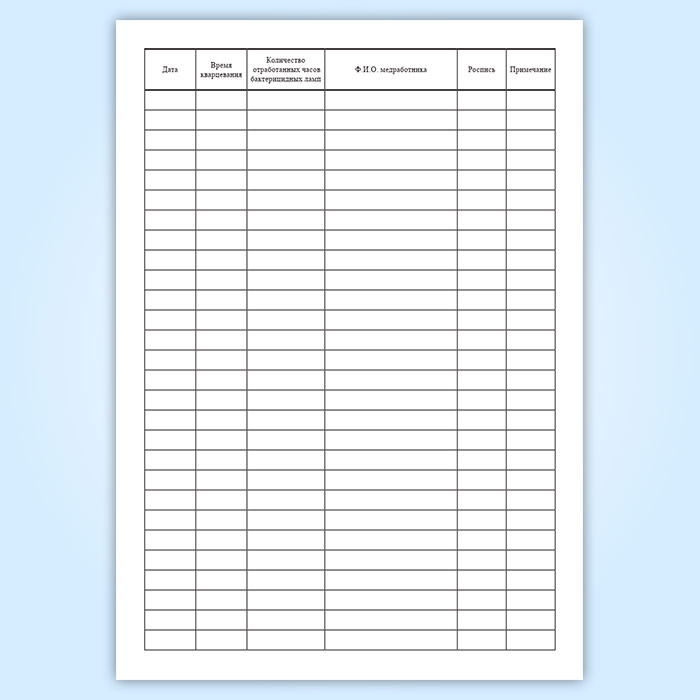Журнал регистрации и контроля работы бактерицидной лампы в Верее купить