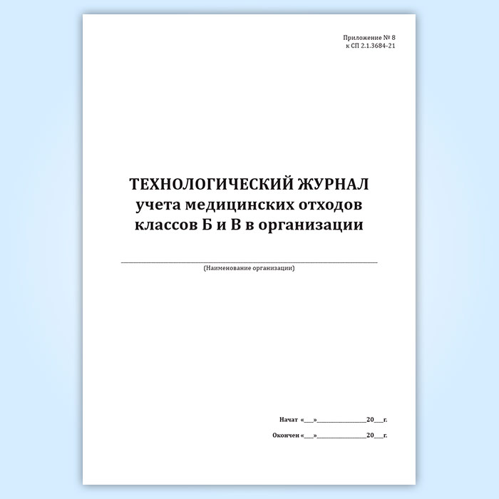 Технологический журнал учета медицинских отходов классов Б и В в организации в Верее купить