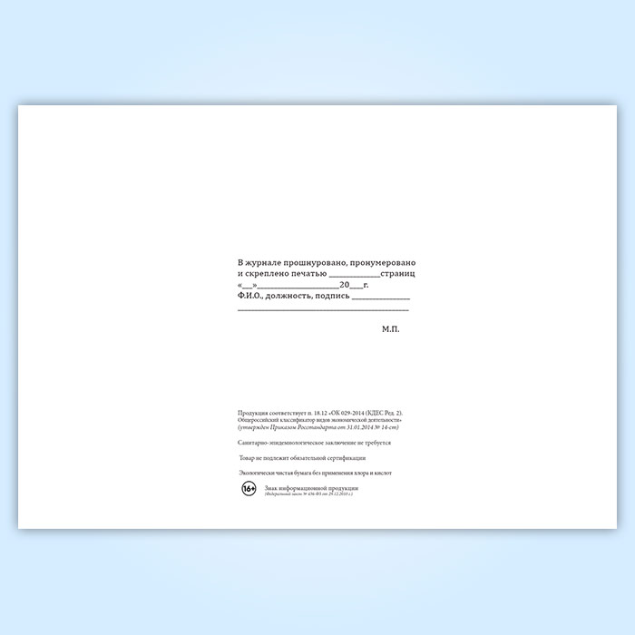 Вы получаете печатную продукцию прошнурованной и c местом для вашей печати в соответствии с действующими нормативными документами: