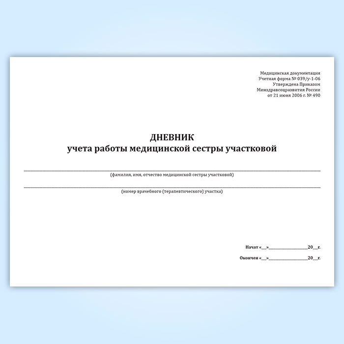 Дневник учета работы медицинской сестры участковой (форма 039/у-1-06) в Верее купить