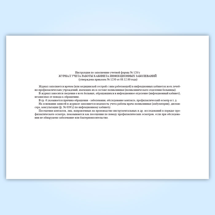 Журнал учета работы кабинета инфекционных заболеваний (форма 128/у) в Верее купить