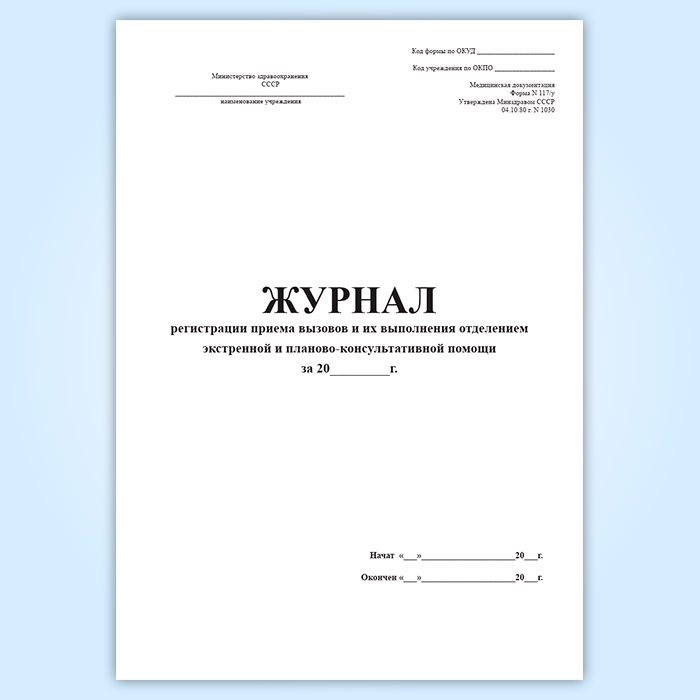 Журнал регистрации приема вызовов и их выполнения отделением экстренной и планово-консультативной помощи (форма 117/у) в Верее купить