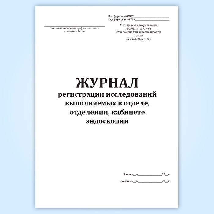 Журнал регистрации исследований выполняемых в отделе, отделении, кабинете эндоскопии (форма № 157/у-96) в Верее купить
