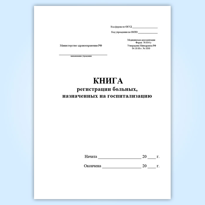 Книга регистрации больных, назначенных на госпитализацию (форма 034/у) в Верее купить