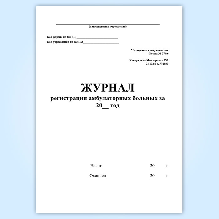 Журнал регистрации амбулаторных больных (форма 074/у) в Верее купить