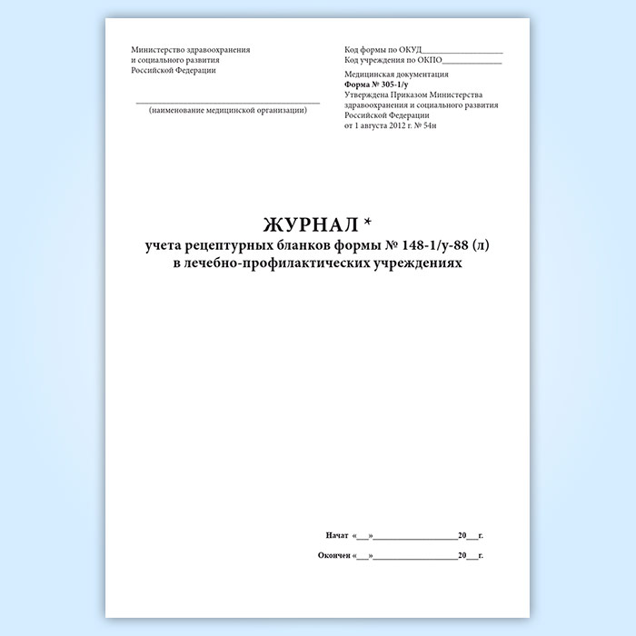 Журнал учета рецептурных бланков формы № 148-1/у-88 (л) в лечебно-профилактических учреждениях форма 305/у-1 в Верее купить