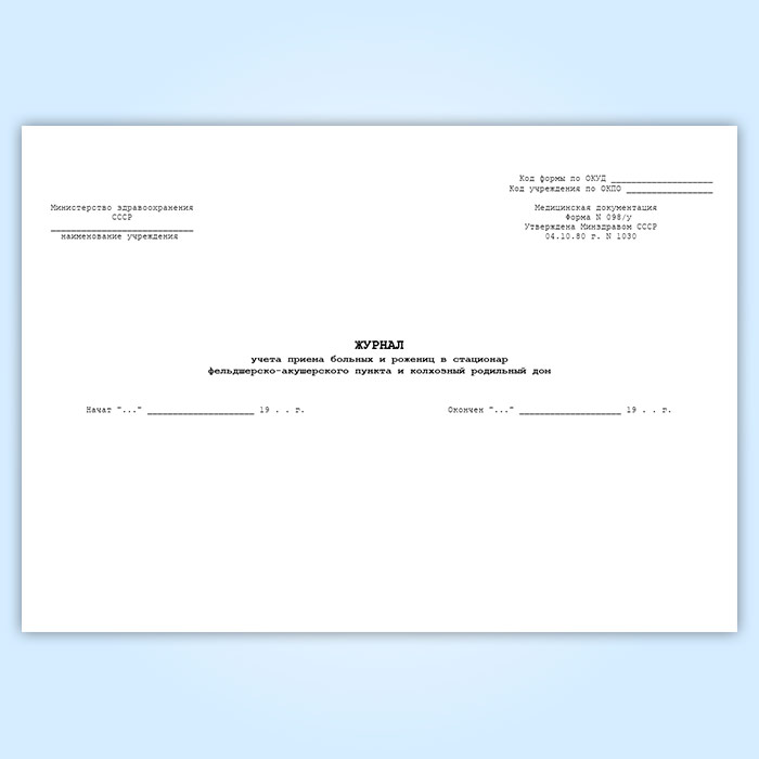 Журнал учета приема больных и рожениц в стационар фельдшерско-акушерского пункта, колхозного родильного дома (форма 098/у) в Верее купить