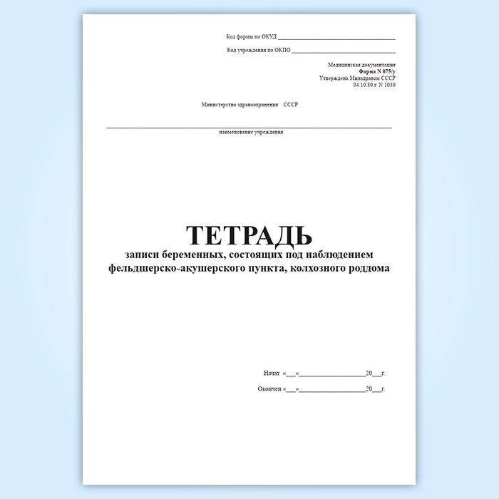 Тетрадь записи беременных, состоящих под наблюдением ФАП, колхозного роддома (форма 075/у) в Верее купить