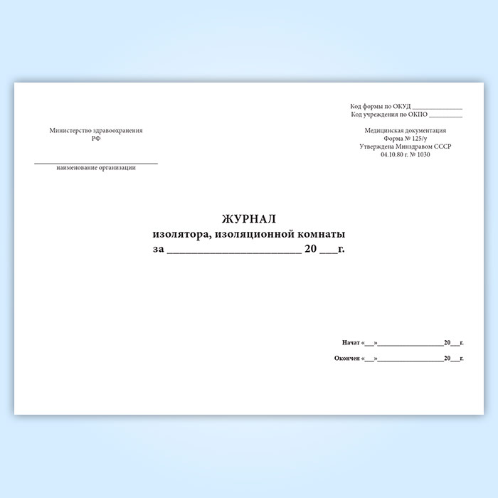 Журнал изолятора, изоляционной комнаты (форма 125/у) в Верее купить