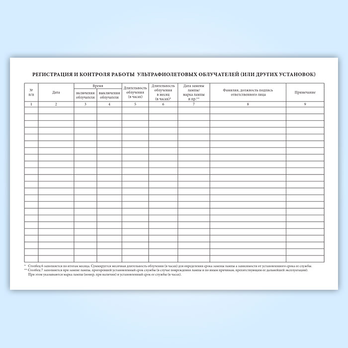 Журнал учета работы ультрафиолетовых облучателей (или других установок) (обсерватор) в Верее купить