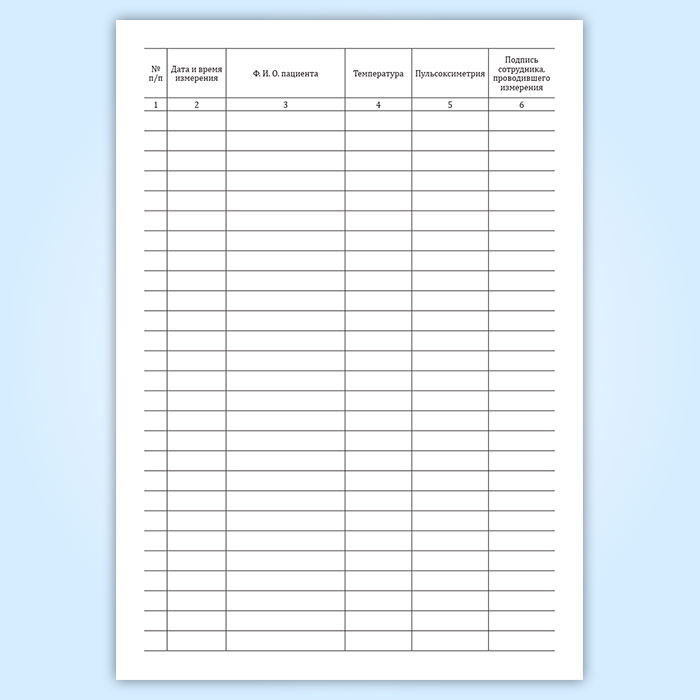 Журнал регистрации показаний пульсоксиметра и температуры тела пациентов в Верее купить